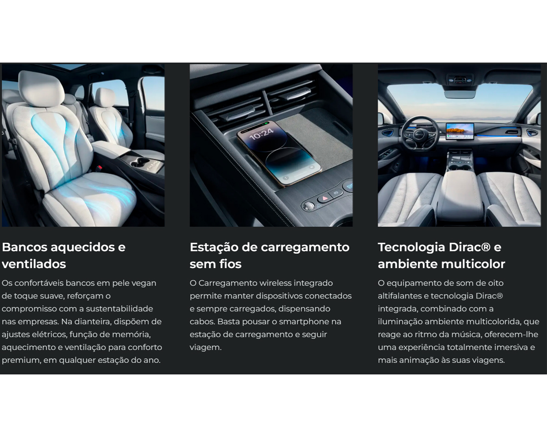 Agora, não precisa de ir ao escritório acompanhar os melhores negócios. Os BYD SEAL 6 DM-i oferecem interiores espaçosos e sofisticados, combinando o design fluido, tecnologia avançada e materiais nobres com acabamentos soft-touch.