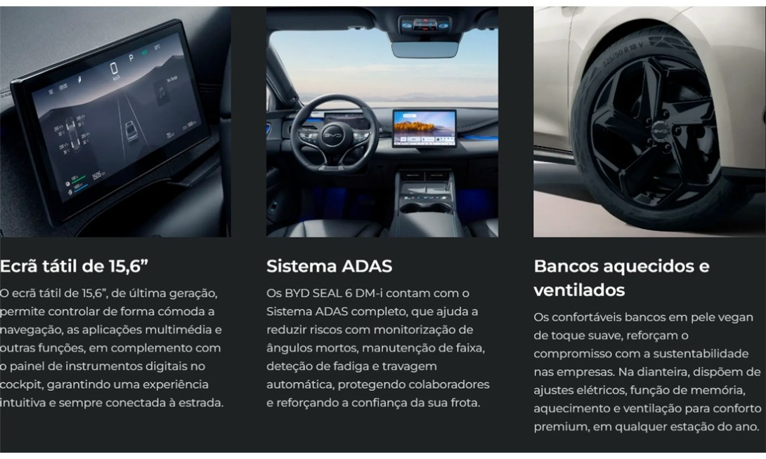 Os novos BYD SEAL 6 DM-i apresentam-se com competências fora de série. Na seleção do seu parceiro de negócio, interessa considerar a autonomia alargada, a eficiência inteligente na gestão de consumos e desempenho, que reduz custos operacionais, a inovação a bordo, a versatilidade no transporte e a diminuição de emissões de carbono, reforçando o compromisso com uma mobilidade mais sustentável.