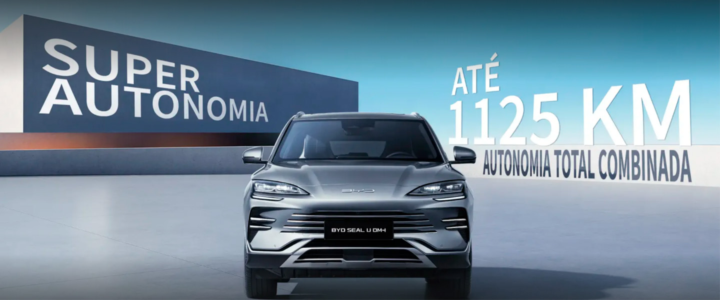 *PVP referente ao modelo BYD SEAL U DM-i versão Boost, em vigor até 30/04/2026 nos concessionários BYD aderentes e limitado ao stock existente. Valor não inclui despesas de legalização, transporte e custos adicionais de opção de pintura. Acresce IVA à taxa legal em vigor. Imagem não contratual. WLTP: Consumo de energia em ciclo combinado (kWh/100 km): 17,9 - 23,5; Consumo de combustível em ciclo combinado (l/100 km): 5,6 - 7,4; Consumo ponderado em ciclo combinado (l/100 km): 0,4 - 1,2; Autonomia elétrica em ciclo combinado (km): 70 - 125; Autonomia total (elétrico + combustível): 870 - 1125 km; Emissões de CO2 em ciclo combinado (g/km): 9 – 26.