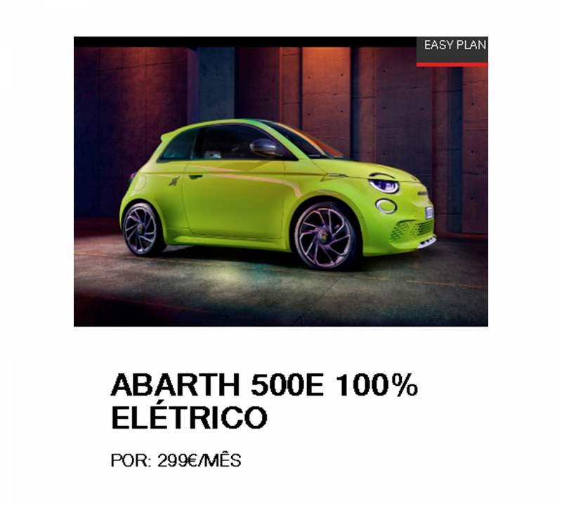 EASY PLAN - ABARTH 500e 100% ELÉTRICO Por: 299€/mês + IVA*