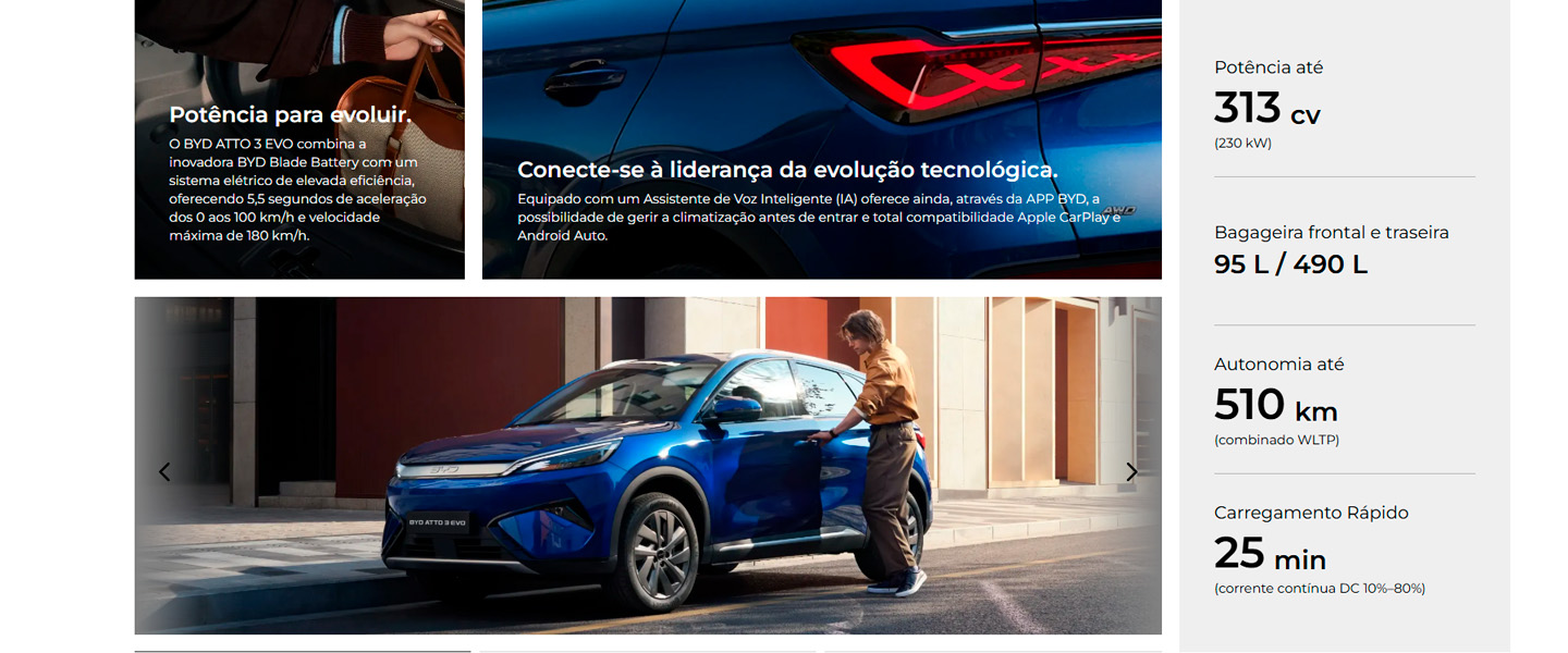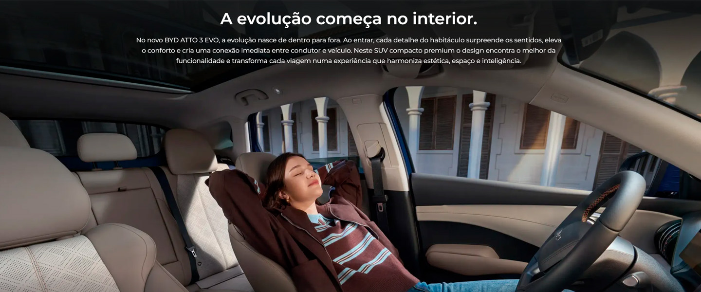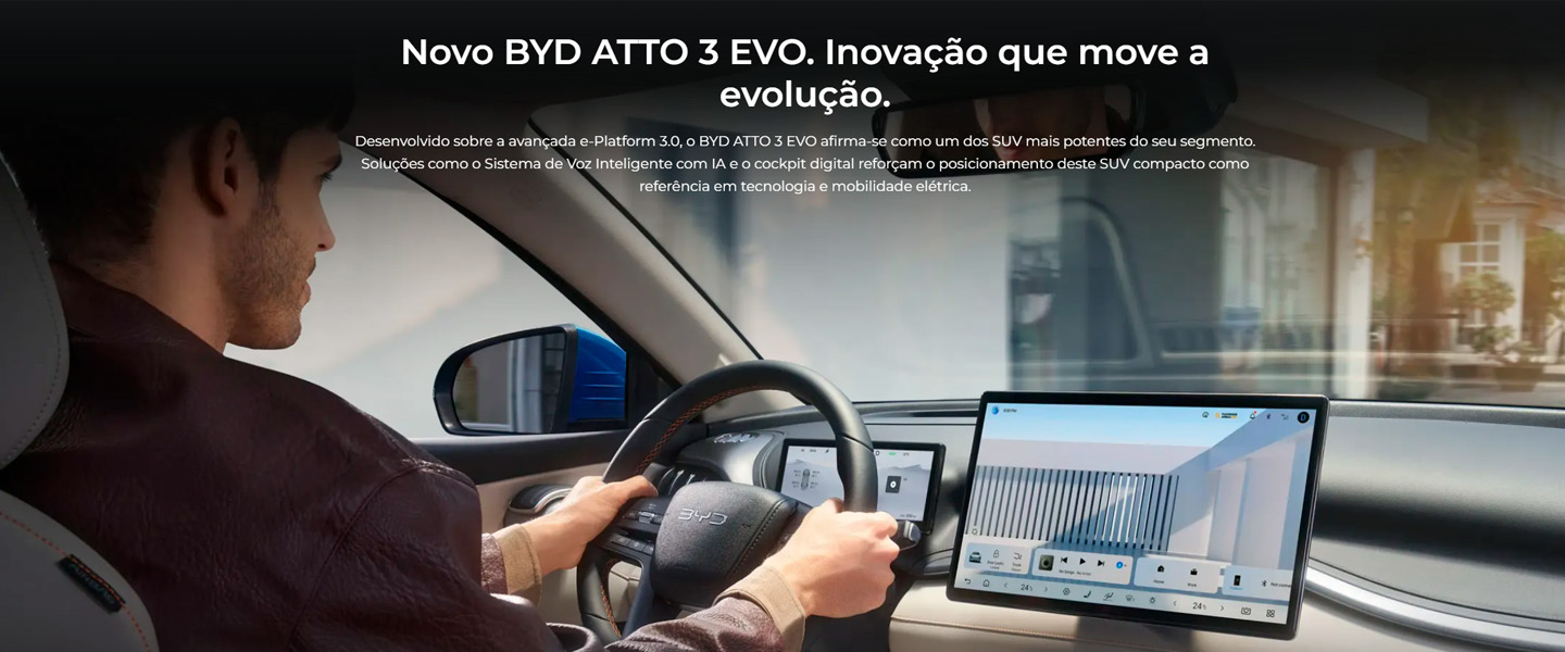 Conduza a evolução 100% elétrica do BYD ATTO 3 EVO.